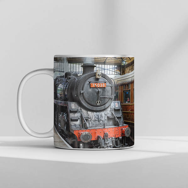 This Mug features a picture of BR Standard Class 4 76038 at Pickering Station. 76038 is loco 76079 which was renumbered for a railway Gala on the North Yorks Moors Railway