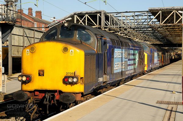 DRS Class 37s At Crewe. Available as Canvas Prints, Metal Prints and Wooden Block Prints in sizes from 18″ x 12″ to 36″ x 24″ (larger by arrangement).