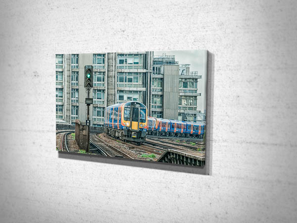Digital art picture of a South Western trains commuter train approaching Vauxhall in South London
